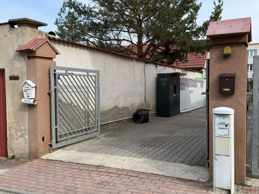 Uvnitř za vjezdem, úplně vzadu na levé straně